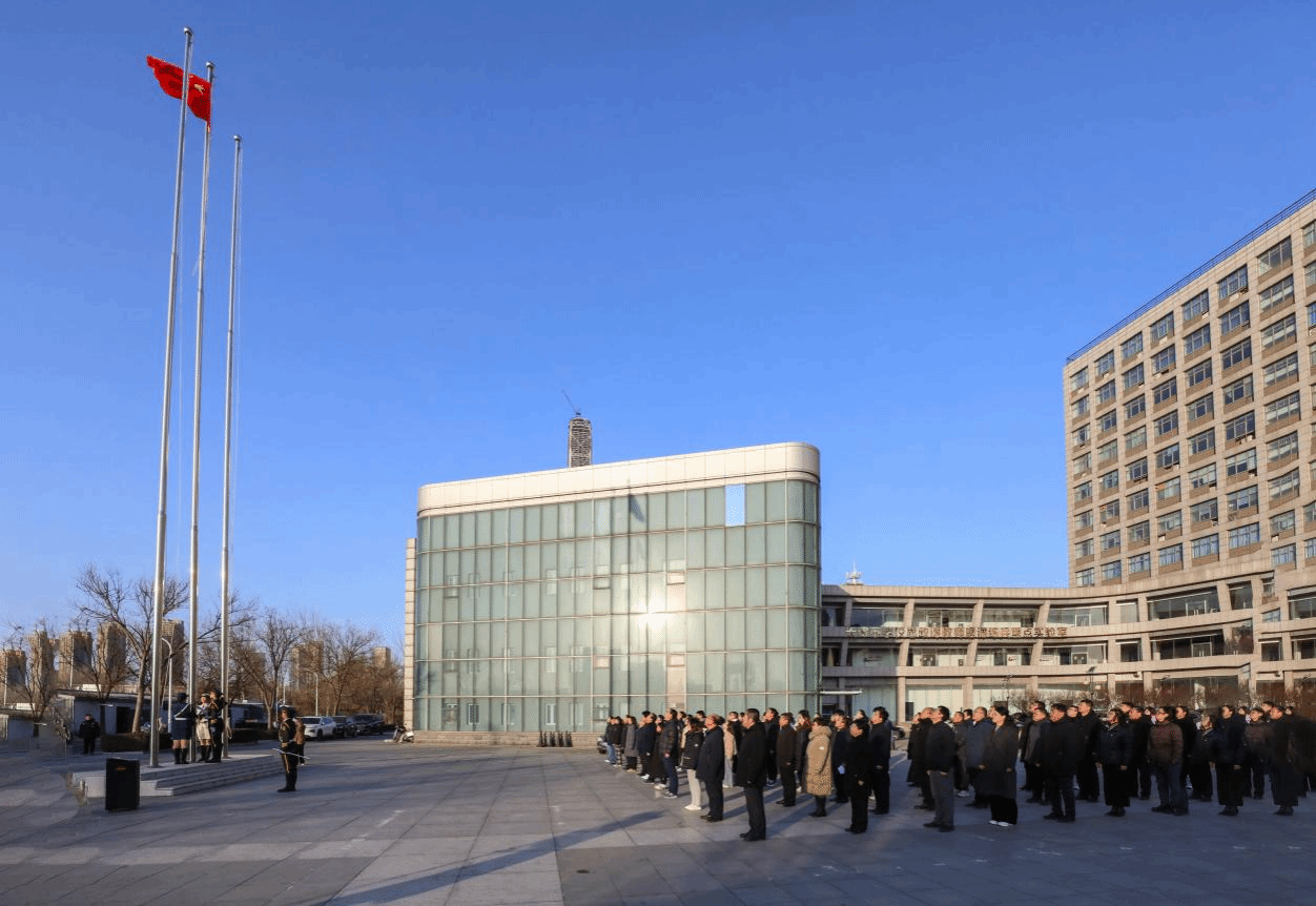 活动现场,师生全体肃立,国旗护卫队队员迈着铿锵有力的步伐走向升旗台,五星红旗缓缓升起,全体师生高唱《中华人民共和国国歌》,随后,全场默哀一分钟。
