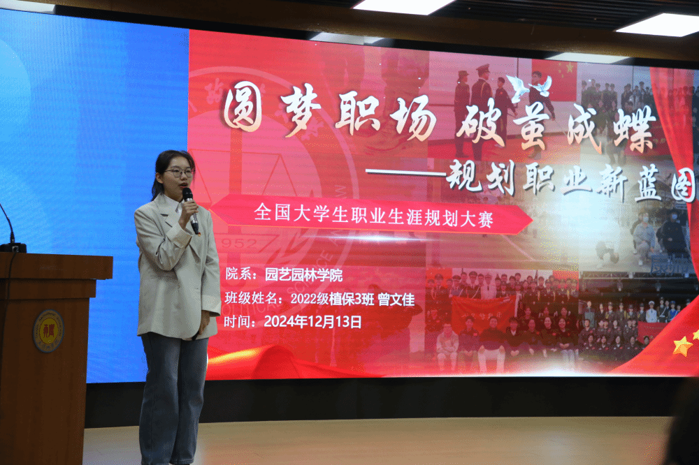 比赛现场,比赛选手围绕职业目标、学习实践行动、岗位胜任力、发展潜力等方面进行精彩展示,面对评委的提问和面试表达了独到的见解,充分展现了个人生涯规划及就业能力,赢得了观众的热烈掌声。他们有人立志成为扎根田野的乡村规划师,助力乡村振兴;有人致力于非遗文旅策划,推动非遗和文旅融合发展;有人希望从事观赏性鱼类的育种与病害防治工作,为鱼文化的宣传贡献力量......选手们结合自己的专业特色、成长经历以及性格特点,阐述了职业目标设定的心路历程,分享了实习实践中的突出表现,剖析了自身的优劣势,并详细描述了为实现职业目标所付出的实际行动。