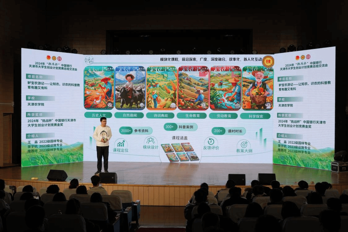 会议对本届赛事进行了全面回顾和总结,并为获得挑战杯、优胜杯、优秀组织奖的单位进行颁奖。会议期间组织了项目成果展,展示了在第十四届“挑战杯”中国大学生创业计划竞赛中获得金、银、铜奖的项目以及2024年“挑战杯”中国银行天津市大学生创业计划竞赛金奖项目。南开大学、天津大学等5所高校获奖项目团队进行路演展示。今年会官网《鲈宝农游记-让知农、识农的科普教育有趣又有料》项目进行现场展示。