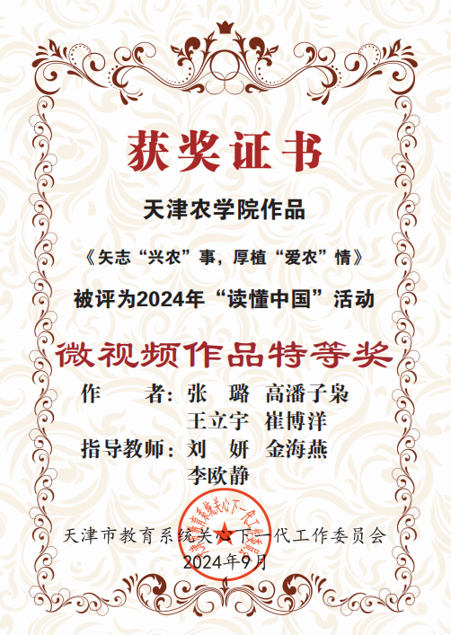 坚持思想铸魂,创新开展教师思想政治及师德师风教育。以“大力弘扬教育家精神 加快建设教育强国”为主题,召开庆祝教师节表彰大会,为获得荣誉称号集体、个人及从教三十年教职工颁发证书。邀请天津职业技术师范大学职业教育教师研究院李梦卿教授,以“大力弘扬教育家精神 落实立德树人根本任务——学习贯彻习近平总书记关于教育的重要论述”为题开展专题讲座。2024年获评“天津市教育系统先进集体”1个,“天津市优秀教师”1人,“天津市优秀教育工作者”1人。充分发挥退休老教师等“五老”优势,突出“育人+助人”,倾心关爱大学生、青年教师成长成才,在“读懂中国”活动中,创作的微视频作品《矢志“兴农”事,厚植“爱农”情》荣获天津市教育系统关工委特等奖、教育部关工委优秀奖。