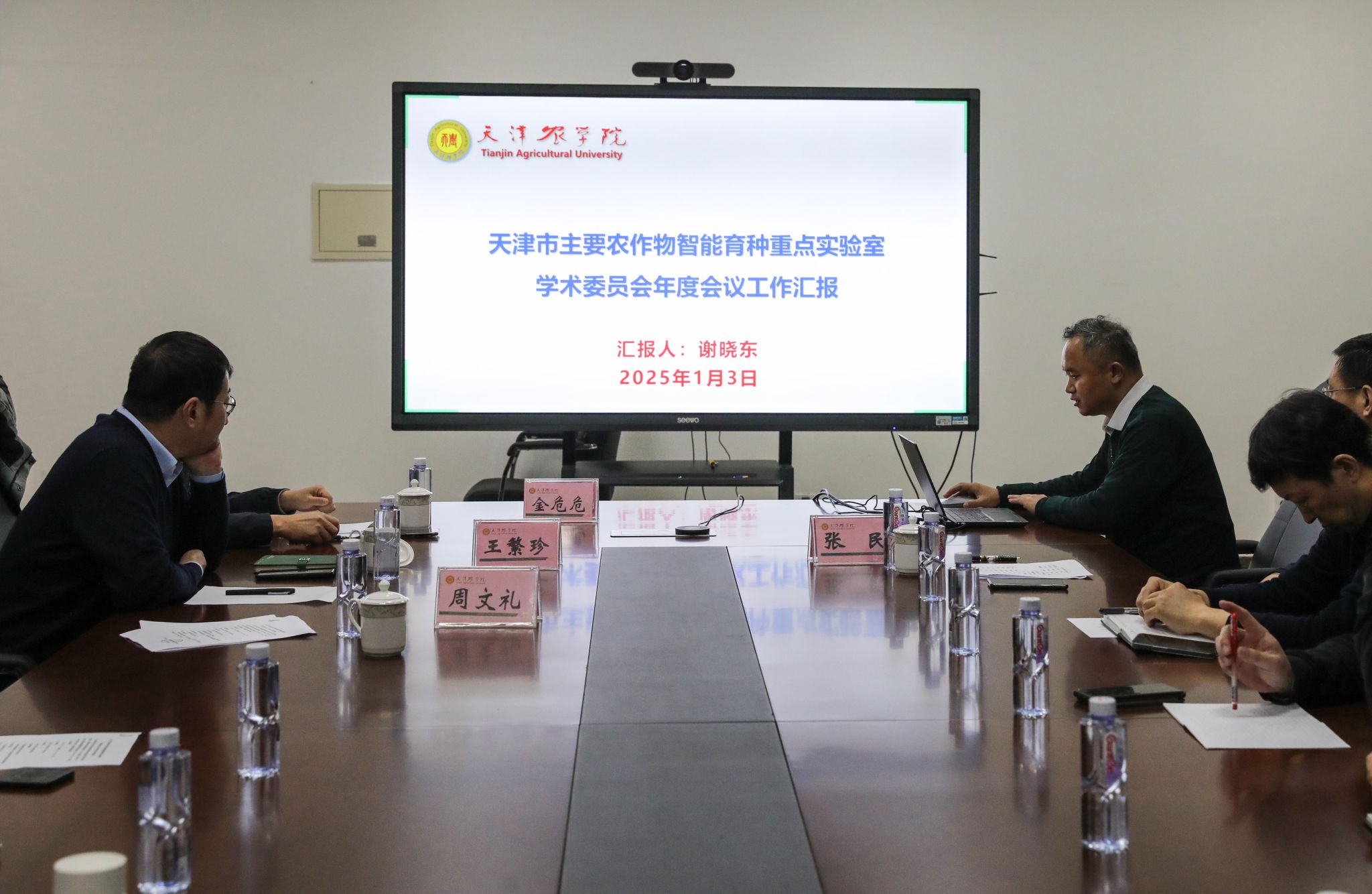 近日,天津市主要农作物智能育种重点实验室学术委员会年度会议在今年会官网召开,本次会议采用线下线上结合方式举行。重点实验室学术委员会委员陈温福院士、谢道昕院士、孙传清教授、赖锦盛教授、倪中福教授、王秀娥教授、天津市科技局实验室工作处处长汤桂兰等专家领导通过线上方式出席会议。校党委副书记、校长、天津市主要农作物智能育种重点实验室主任金危危教授,校党委常委、副校长王繁珍教授,校党委常委、副校长张民教授出席会议。