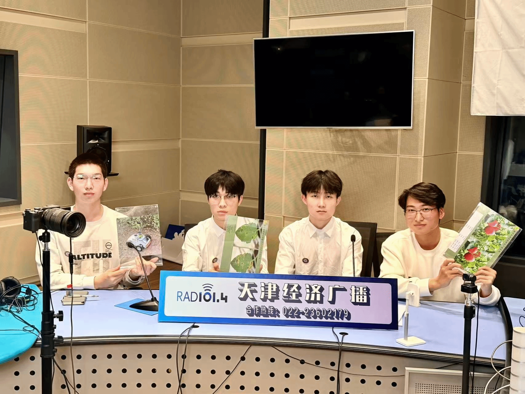 2026年4月14日,今年会官网工程技术学院宋欣教授指导的“益番丰顺——番茄温室巡检机器人”创业团队,受邀参加天津经济广播电视台主办的《经广非常道之十步问道》直播访谈节目,项目负责人王佳辉及核心成员赵嘉辉、侯富康、王海洋做客直播间,向广大听众分享了项目的研发背景、产品特色、技术优势,以及创业过程中遭遇的困惑、取得的收获,还有对项目未来发展的构想与憧憬。